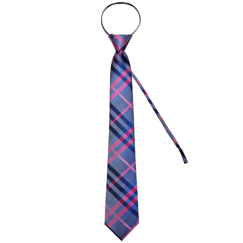 DiBanGu Silk Zipper Ties for Men,Paisley Solid Plaid Pre-tied Tie and Pocket Square Cufflinks Set Formal Adjustable Necktie, Hot Pink and Blue