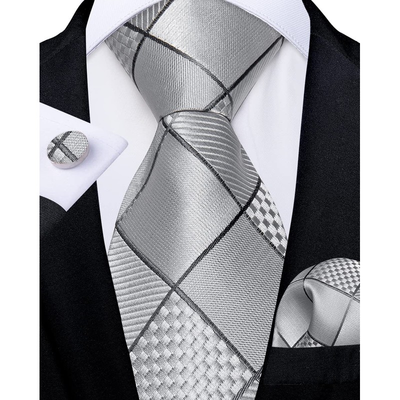 - 【Purchase Contains】Silk Silver Pre-tied Tie+Pocket Square+Cufflinks+Gift Box.It's a surprise gift for Father's Day,Anniversary,birthday,Christmas Day,Valentine's Day,Thanksgiving Day ect