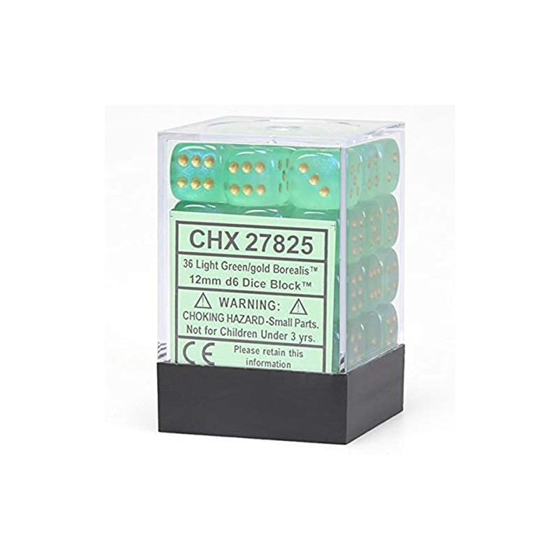 Dice Block with 36 d6 Borealis Light Green w/gold