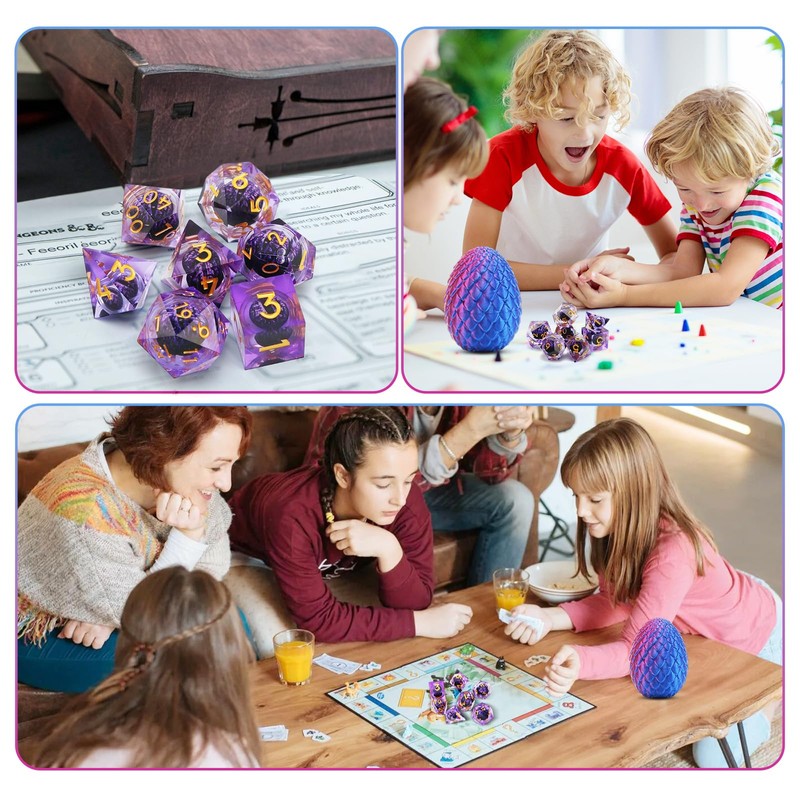 Premium Materials: DND dice are made of resin material with sharp edges and smooth surfaces. Dragon egg shell is made using 3D printing technology from PLA material