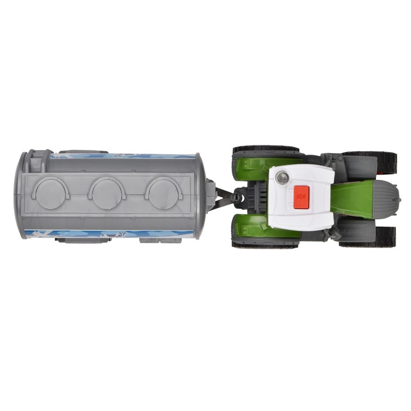- The highlight on the farm – this Dickie Toys tractor for children has something special in towing: a real milk tank with ladder, matching print and fold-out base