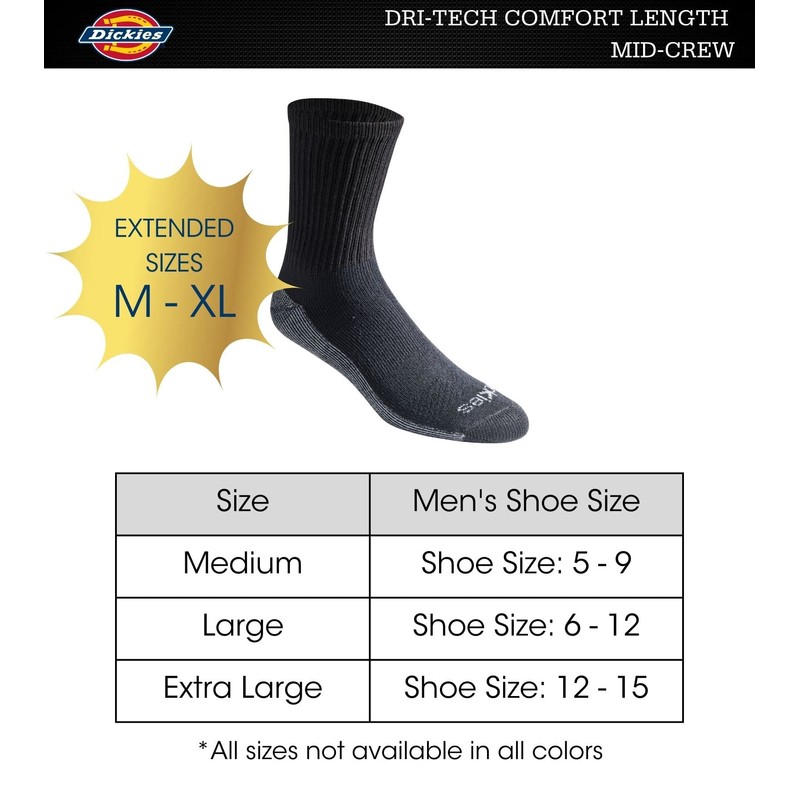 Dickies Men's Dri-tech Moisture Control 6-Pack Comfort Length Crew Socks