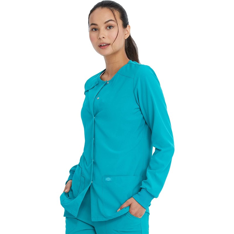Dickies Scrub Jackets for Woman Snap Front Warm-up Jacket with 2 Pockets - DK305, S, Teal Blue