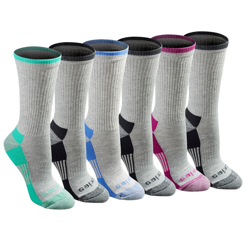 Dickies Women's Dritech Advanced Moisture Wicking Crew Socks (6/12 Pairs), Grey Assorted (6 Pairs), Shoe Size: 4-6