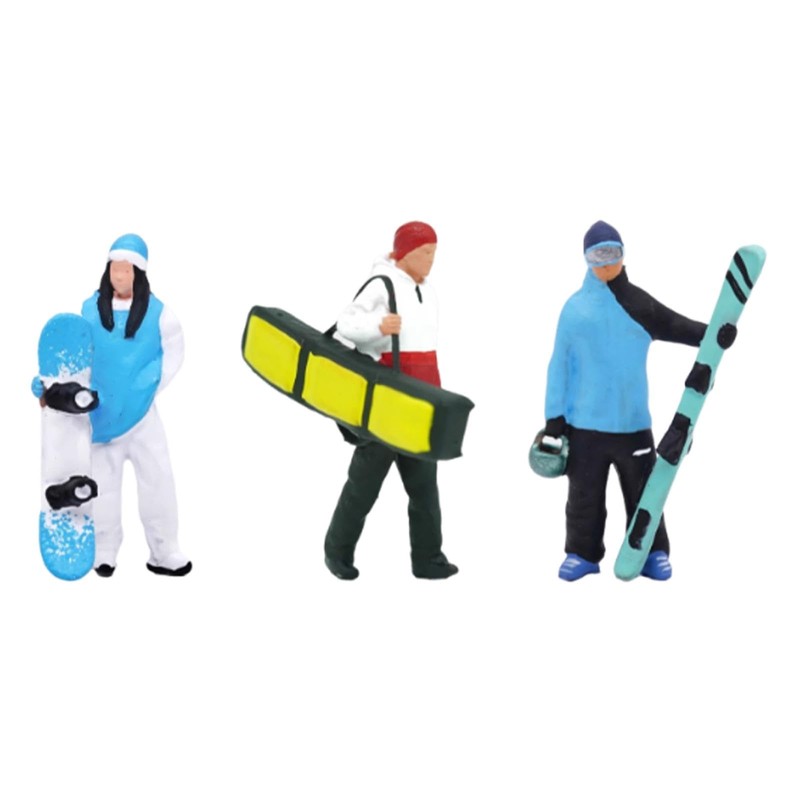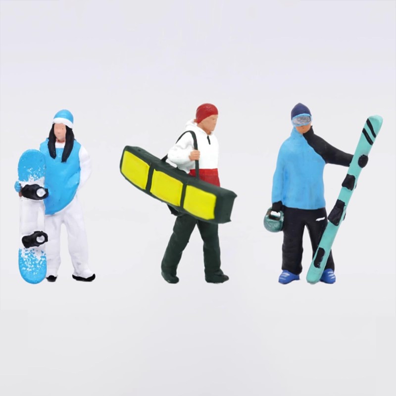 - 【1:64 Scale Figures】: Miniature Skiing figurine, someone carries a ski bag, someone holds a skis, and the other person holds snowboarding, collection for people who like skiing
