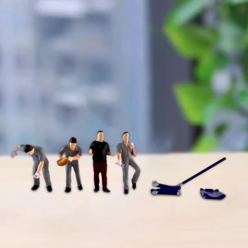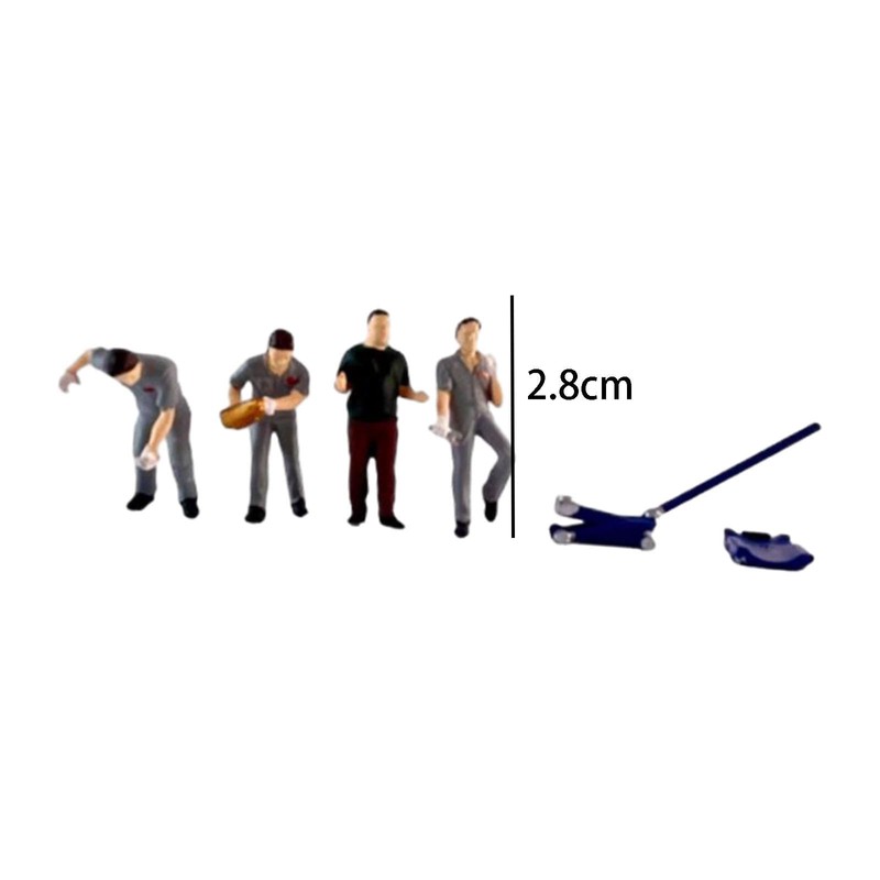 Dickly 4x 1/64 Diorama Figures Character Repairman Handpainted Hobby Miniature Layout for Model Building Kits Kids Adults Gifts, gray