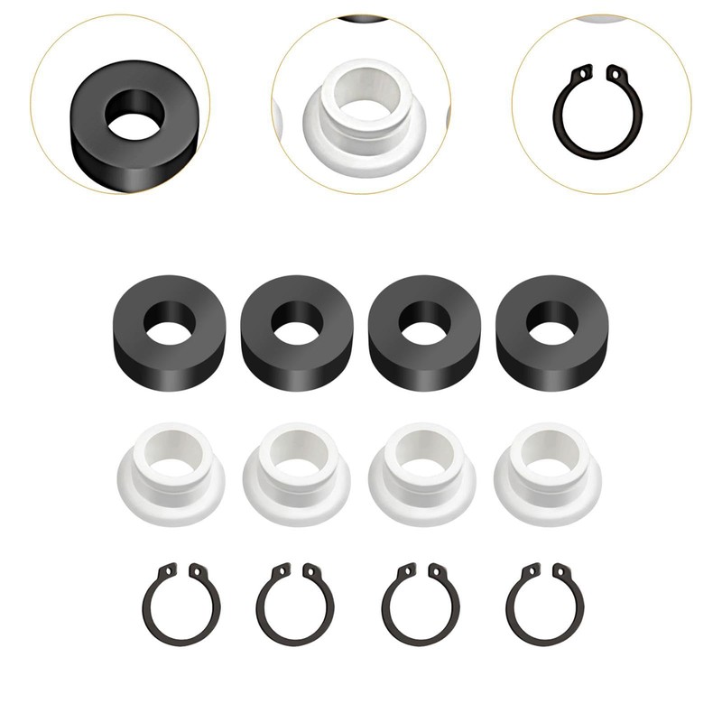 - 【Package Includes】: 4 Bushings, 4 Retaining Rings, 4 Shock Absorbing Bushings