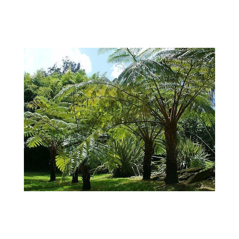 Dicksonia antarctica, commonly known as the soft tree fern or Tasmanian tree fern, is a species native to eastern Australia, including Tasmania. This remarkable fern is renowned for its impressive size, with fronds that can reach up to 4 meters (13 feet) in length, arching gracefully from a stout, trunk-like stem that can grow up to 15 meters (49 feet) tall. The trunk is covered with a dense layer of fibrous roots, providing both stability and a distinctive appearance. Preferring cool, moist, and shaded environments, Dicksonia antarctica thrives in temperate rainforests and is often found near streams and sheltered gullies. If protected in zone 8 it can tolerate light frosts, making it popular in gardens and landscapes beyond its native range. This species contributes significantly to its ecosystem, providing habitat and food for various wildlife, and plays a crucial role in the understory of forested areas. Zones 8-10