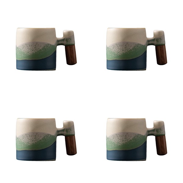Dicmracy 2-Oz Ceramic Espresso Cups with Wood Handle, 2/4-Piece Set for Coffee, Tea, Latte - Dishwasher Safe, Multi-Color & Wood Styles, Gift & Café Use (Kiln turning blue, Wooden Handle4)