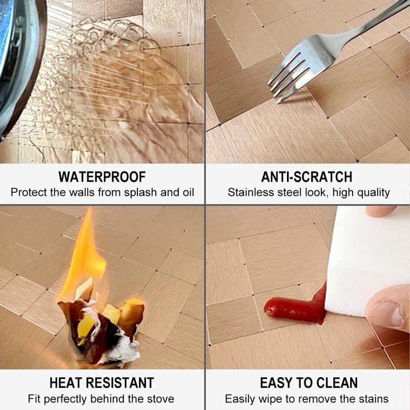 - High waterproof and heat resistant performance, designed for kitchen island walls, bathroom backsplash, and fit perfectly behind the stove. Easily wipe to remove stains, protect the walls from splash and oil.
