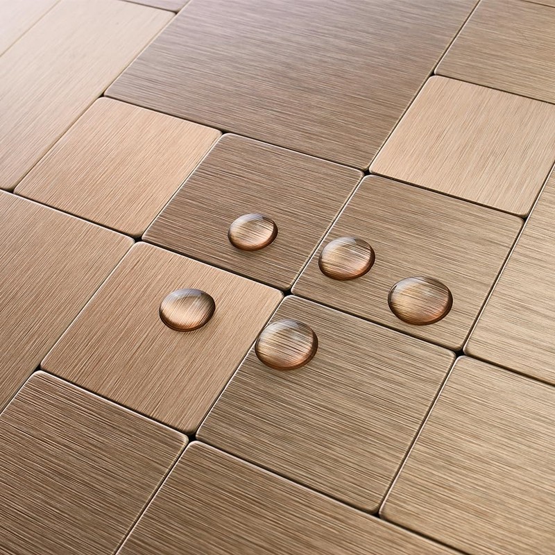 - Made of brushed aluminum surface & durable SPC composite laminate, stainless steel look, anti-scratch, high impact, much thicker and stronger than vinyl tiles.