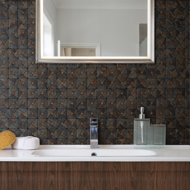 DICOFUN Peel and Stick Wall Backsplash, Stick on Tiles Backsplash for Kitchen and Bathroom (10, Rust Slate Mixed Glass)