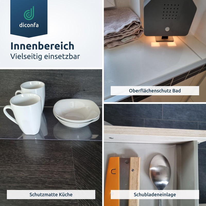 - Areas of use: front door and gate sealing, insect protection, indoor: underlay crafts, bathroom, kitchen, basement, workshop protective mat surfaces (wood, metal, glass, plastic, etc.)