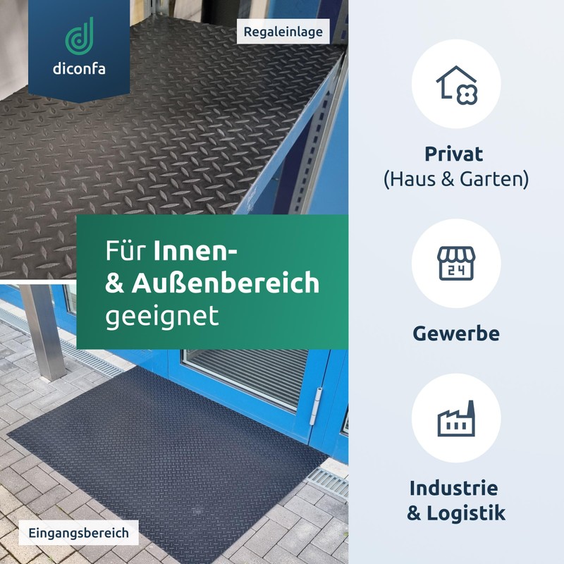 - Ideal rubber mats for: trailers, garage, camping, greenhouse, stable, workshop, workbench, boot, boat, shelf insert, car mat, rubber flooring, machines, systems, floor cable mat