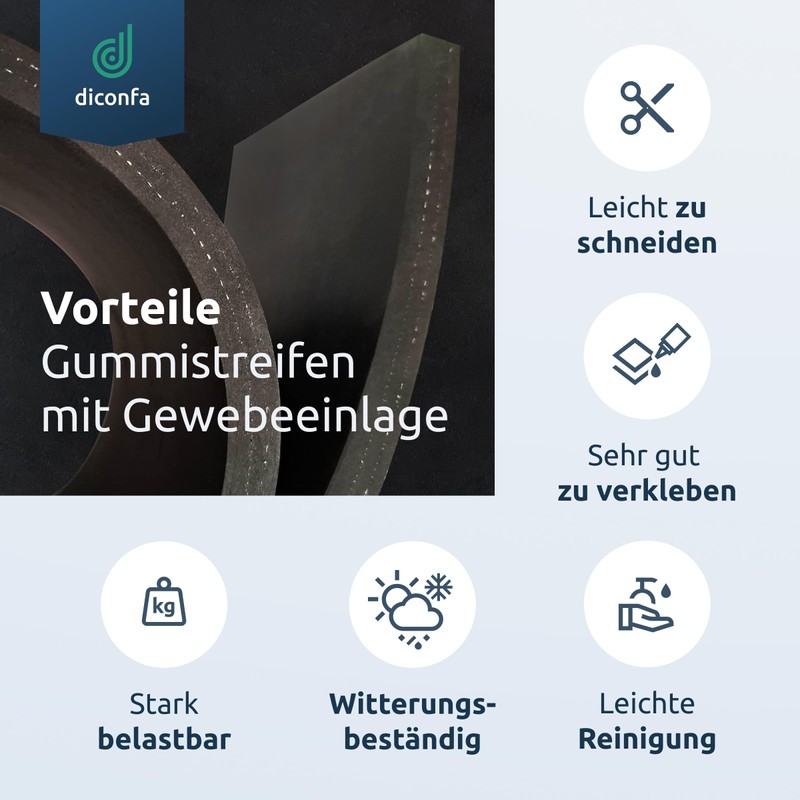 - Use: the diconfa rubber mats are suitable for industry, logistics, trade and private use (e.g. underlay, pad, decoupling, insulation, sound insulation, damping, sealing etc.)