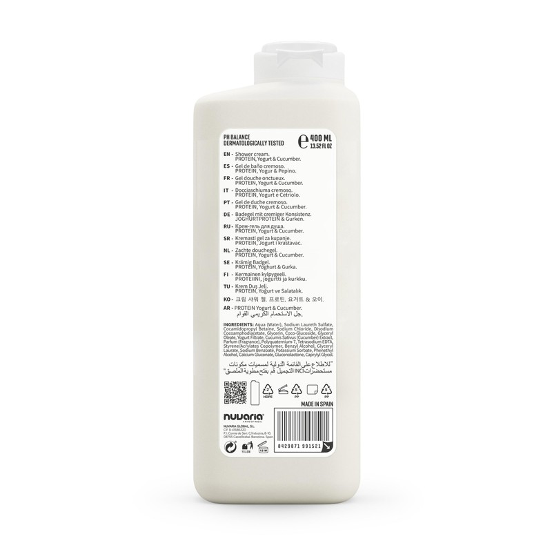 • IN SHOWER MOISTURIZER HYDRATES SKIN DEEPLY. Experience the luxury of a creamy bath gel enriched with yogurt and cucumber proteins. This shower lotion for wet skin delivers intense hydration, leaving skin velvety soft and refreshed.