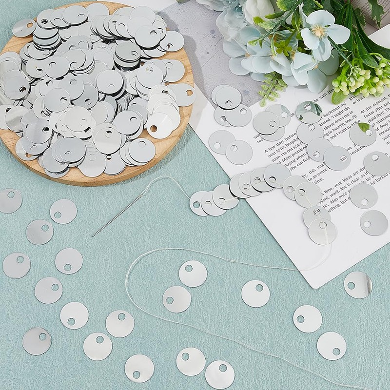 DICOSMETIC 1600 Pieces 19 mm Flat Round Plastic Sequins with Large Hole, Metallic Large Loose Sequins for DIY Jewellery Making, Silver