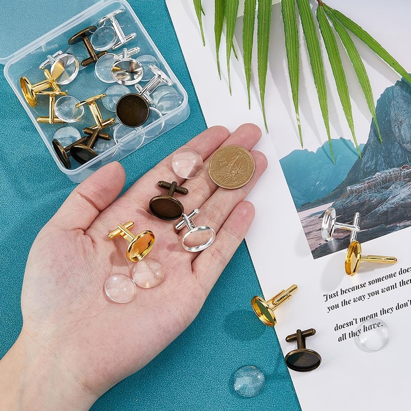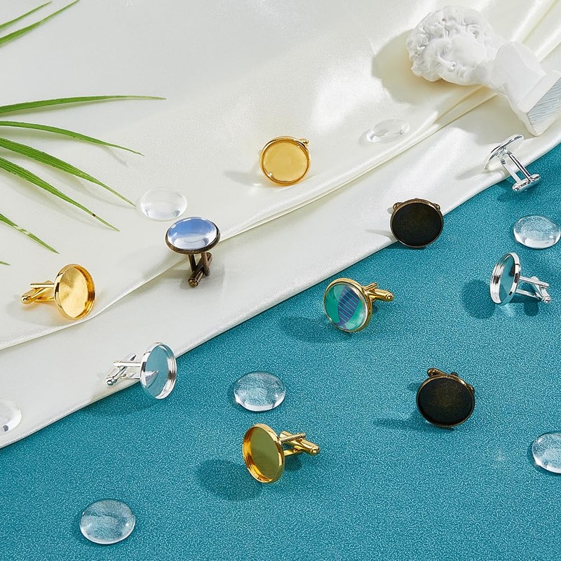 - Glass Cabochons: Each kit comes with clear glass cabochons, approximately 17.5-18 in diameter and 5mm thick, allowing you to display intricate designs or artwork, adding dimension and visual interest to the cufflinks.