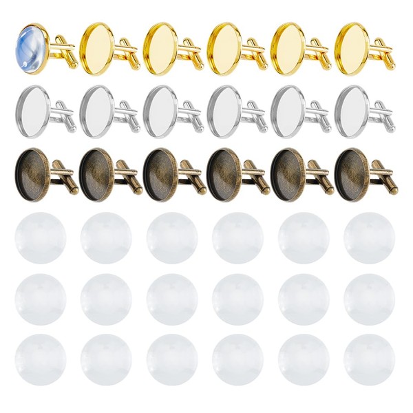 DICOSMETIC 18 Sets 3 Colors Blank Cufflinks Bulk 18mm Cuff Button Brass Men's Cufflinks Cabochons Frame Tray Bezel Cufflink Blanks Setting Tray for Custom Photo Cufflinks