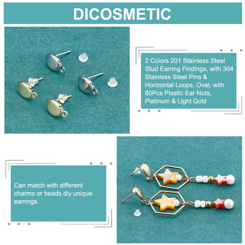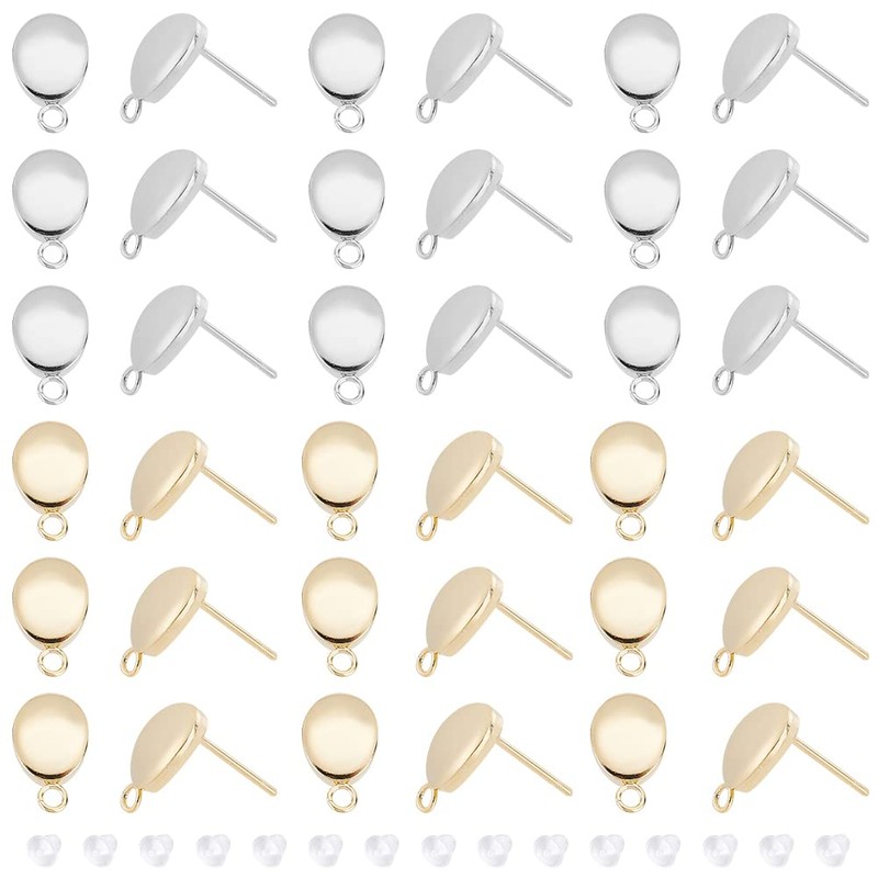 DICOSMETIC 40 Pieces 2 Colours Oval Stud Earrings Accessories Stainless Steel Stud Earrings with Bow Gold Blank Stud Earrings and 80 Pieces Plastic Ear Nuts for Earring Making, Bore: 1.6 mm, Pin: 0.7