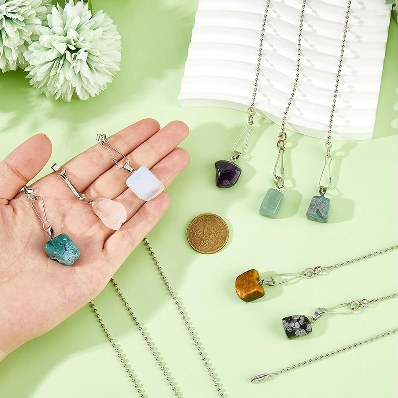 DICOSMETIC 8Pcs Natural Gemstone Ceiling Fan Pull Chain Extenders 17 Inch Decorative Fan Pull Chain Pendant Extension Fan Pull Chain Extender Ornament with Connector
