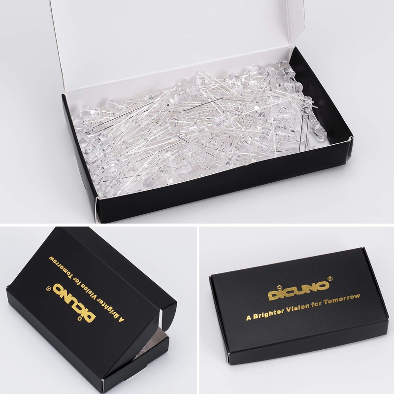 DiCUNO 100 pieces 5 mm RGB LED diodes, fast flashing LEDs, multi-coloured 5 mm LEDs for DIY, lighting project, handmade, 3.0-3.4 V, 20 mA