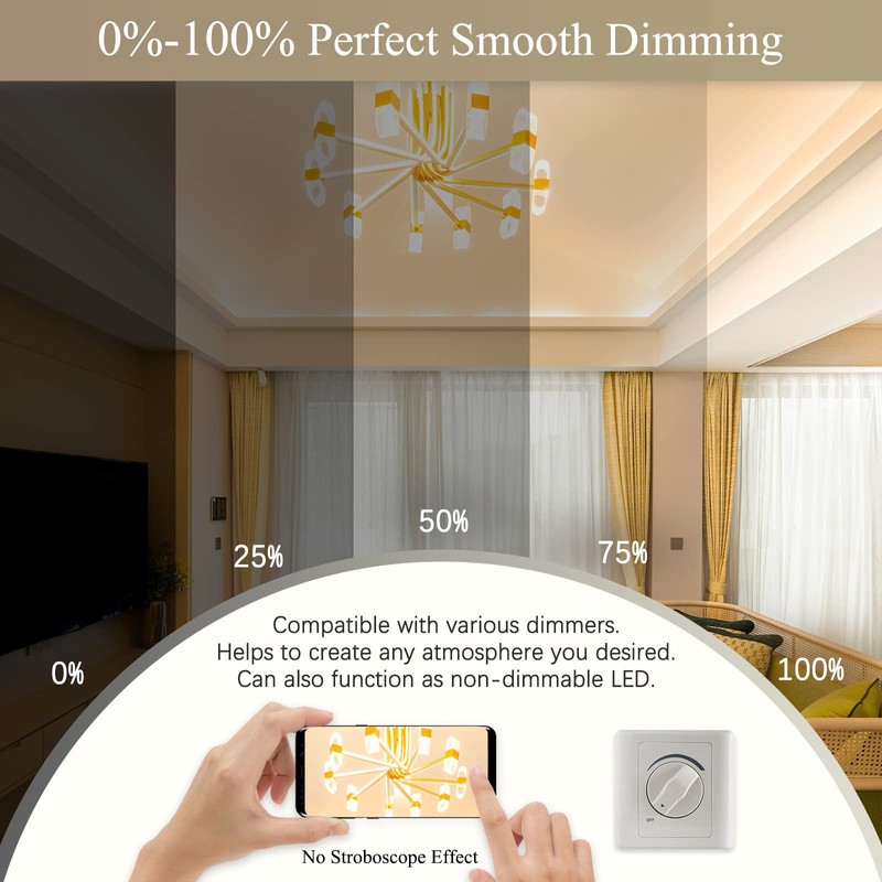 - ?Hervorragende Dimmleistung Die Helligkeit dieser E14 LED-Birne l?sst sich flimmerfrei von 0% bis 100% regulieren. Sie ist frei von UV- und IR-Strahlung sowie sch?dlichen Substanzen. Ideal fr Bereiche, in denen Helligkeitsanpassungen wichtig sind.