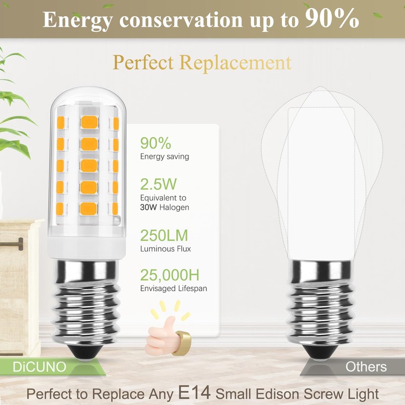 - ?Kompakte Gr??e, Universelle Passform DiCUNO E14-Schraube mit nur 14 mm Au?endurchmesser, die r?hrenf?rmige Bauweise ?hnelt einem Maiskolben. Mini-Gr??e (15 x 55 mm) perfekt fr diverse Beleuchtungsumgebungen.