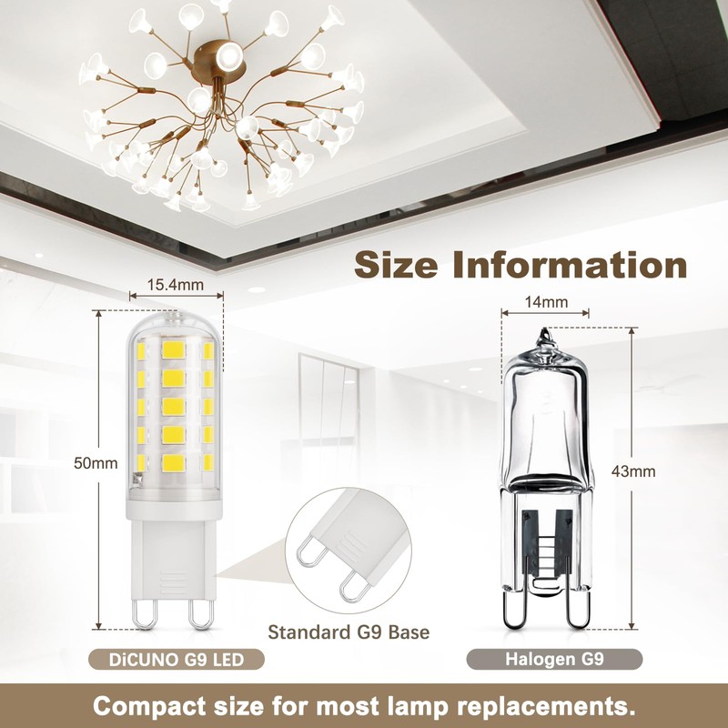 • 4. Vielseitige Anwendungsm?glichkeiten: Diese LED Leuchtmittel passt in alle standardisierten G9 Fassungen und eignet sich hervorragend fr Kronleuchter, Deckenleuchten, Tisch- und H?ngelampen sowie Wandleuchten. berprfen Sie die Gr??e vor dem Kauf, um sicherzustellen, dass sie fr Ihre Leuchten geeignet ist.