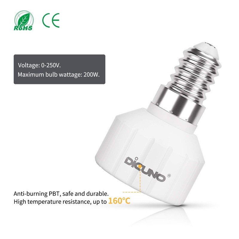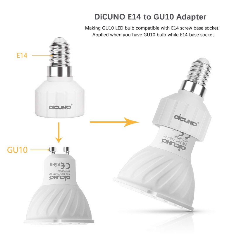 DiCUNO DiCUNO Lampenadapter E14 auf GU10 Lampenfassung Konverter, Lampensockel von E14 auf GU10 fr Glhbirnen, LED Lampen, Max. Leistung 200W, 0-250V, Hitzebest?ndig bis 160C, 6er Pack