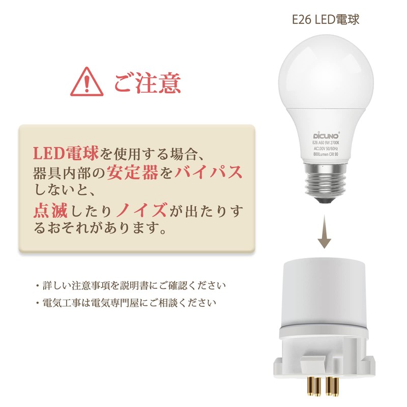 - Please note: If you want to use LED bulbs, you may be blinking or noise, please bypass the ballast inside the base. For your safety, consult an electrician for electrical work