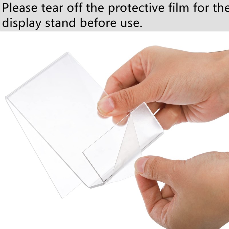 • 10 PCS clear acrylic book stand in 2 size. 5PCS large book display easel size: 10cm L x 10cm W x 15cm H. 5PCS small display easel size: 7.5cm L x 9cm W x 10cm H. It came with film on both sides of each display to prevent scratching while being shipped. Please tear off the protective film for the display stand before use.