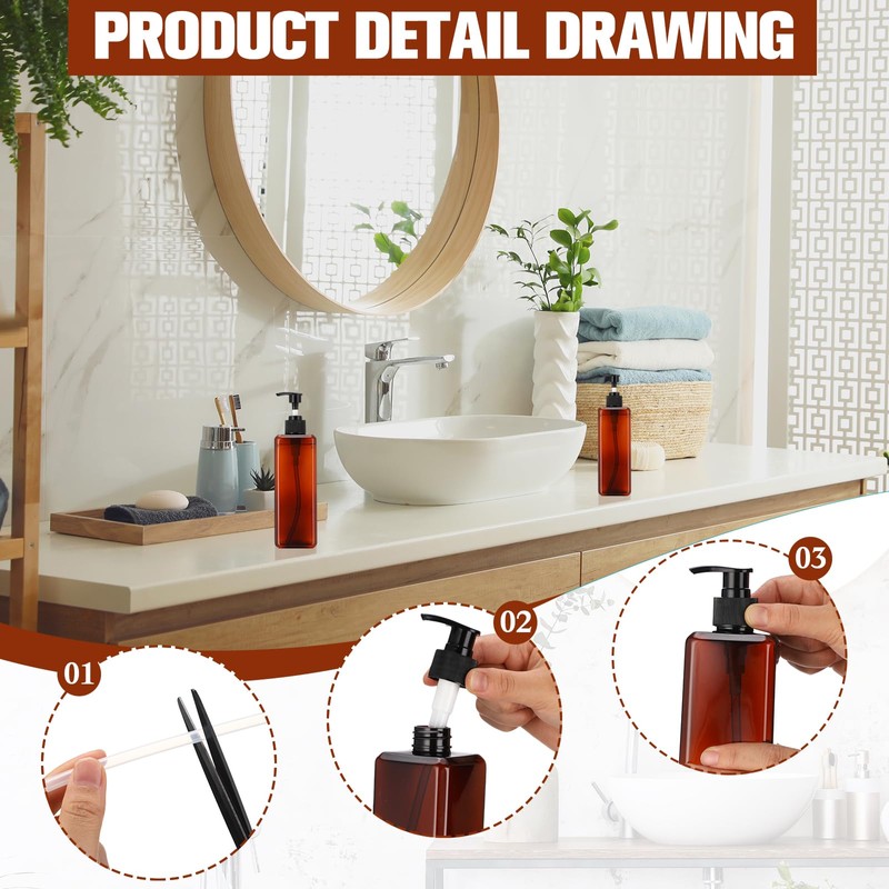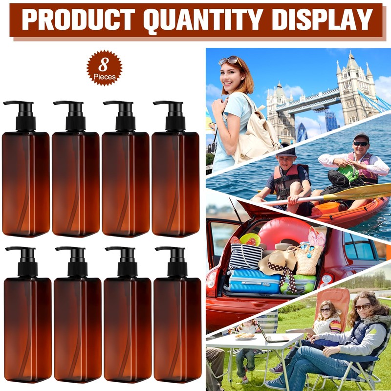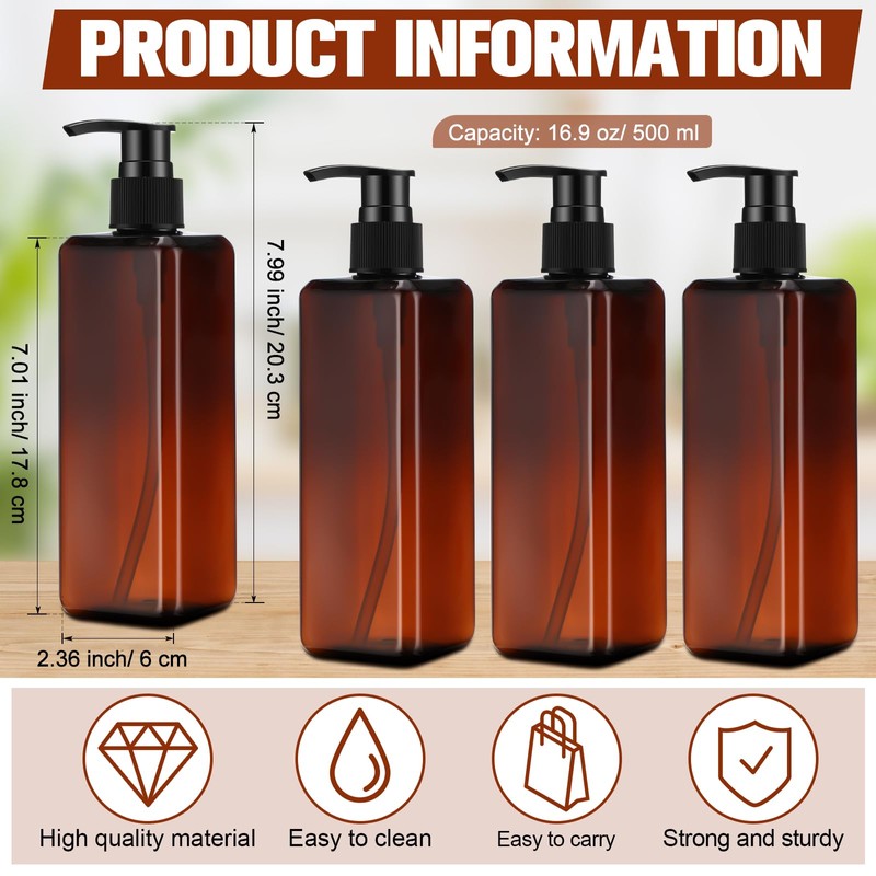 - Package Information: you will get 8 pieces of brown plastic soap dispensers with pump heads, with capacities of 16.9 oz, practical and easy to carry, basically meet your various needs of life