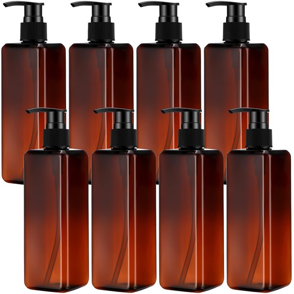 Didaey 8 Pcs Empty Shampoo Bottles with Pump 16 Oz Plastic Soap Dispenser Refillable Body Wash Bottles for Bathroom, Kitchen Sink, Hotel, Salon(Brown)