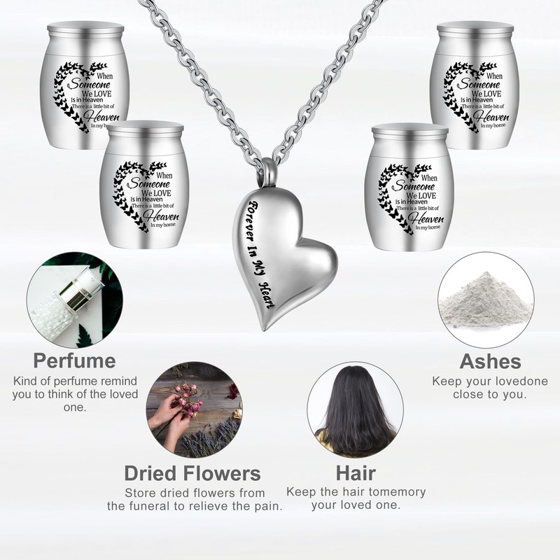 DiDiBirDi Small Cremation Urns for Ashes with Ashes Necklaces,Mini Urns for Human Ashes - 1 Necklaces for Human Ashes and 4 Piece Stainless Steel Funeral Small Ashes Keepsake for Men & Women