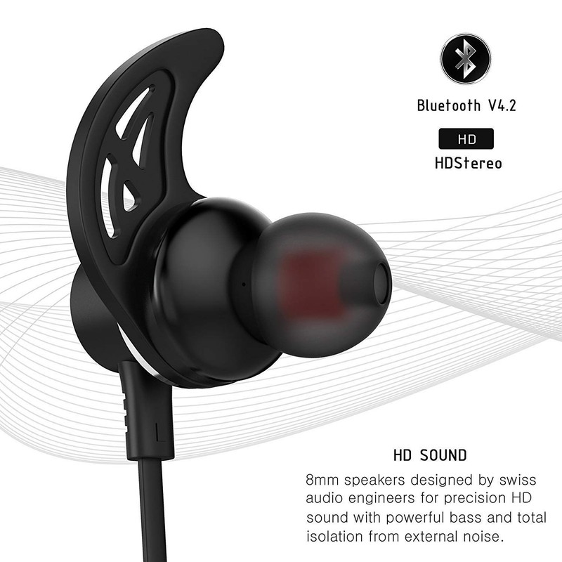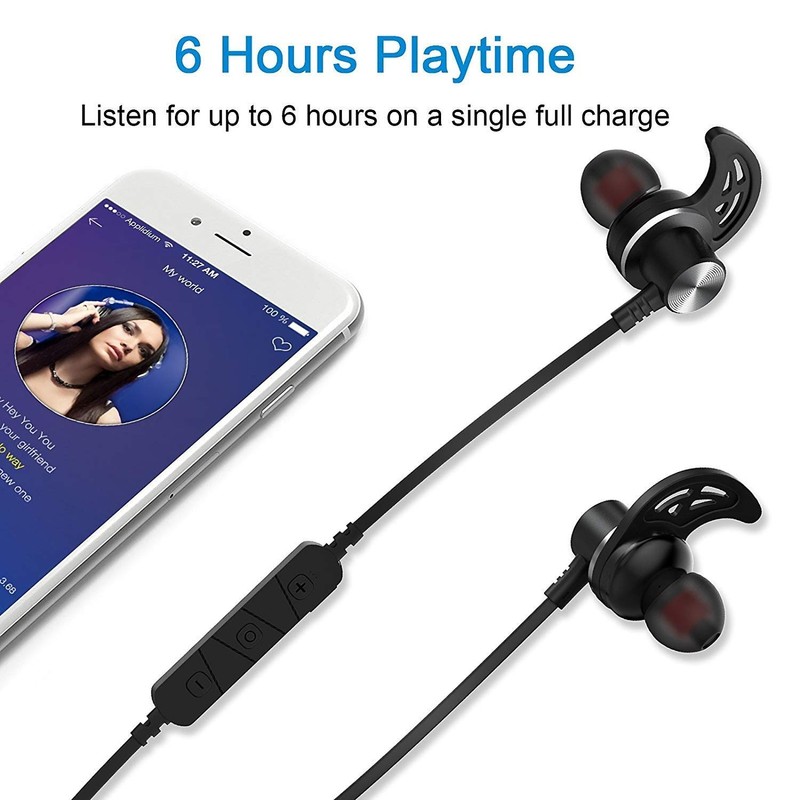 - BLUETOOTH HEADPHONES :Earbuds that work with all smartphones, tablets and music players;Ergonomic design and silicone ear hooks,It is great for Gym, Running, Jogging, Hiking, Cycling, and impact Sports.When you are done with your music, easily stow your Earbuds by wearing them around your neck. Instantly access your Earphones anytime without searching your pockets. Looks cool as well!
