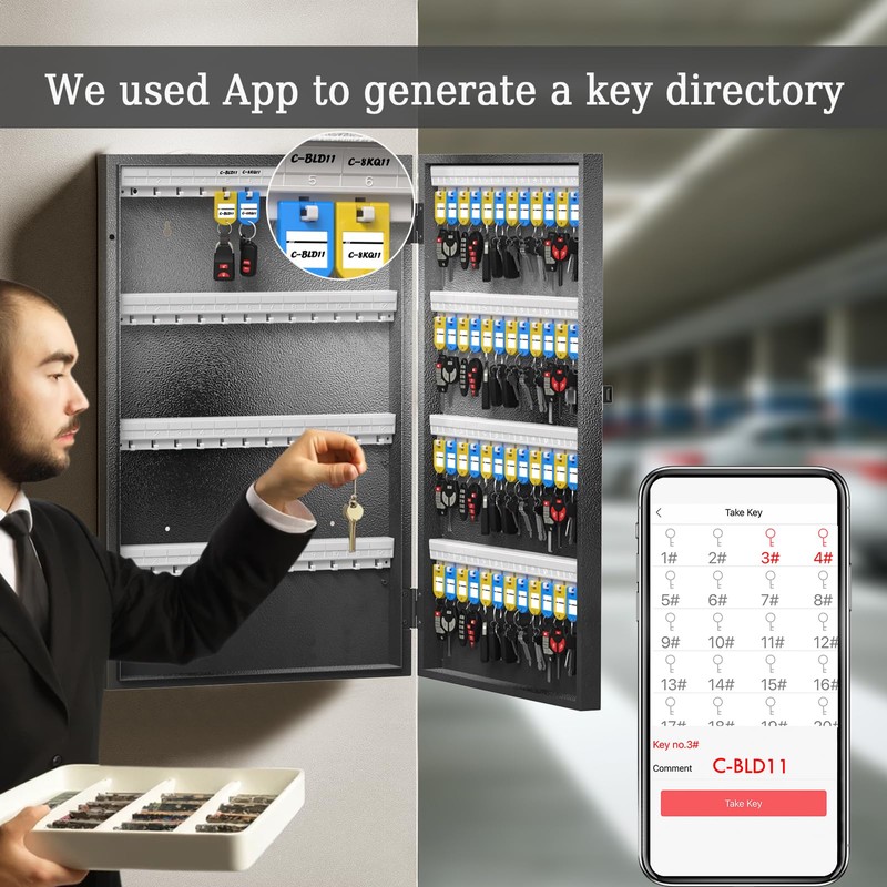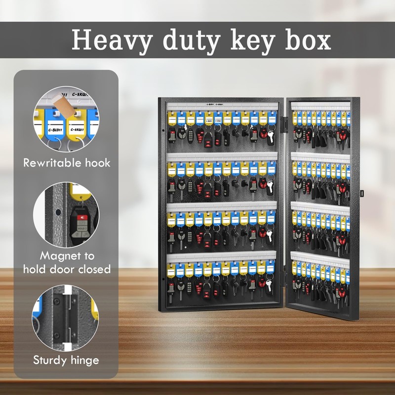 DiDiHere 96 Key Lock Box, Key Cabinet Organizer, Key Safe Security Storage Lockbox Holder for Valets, Hotels, Car and House Keys, Key Keeper Box – Black