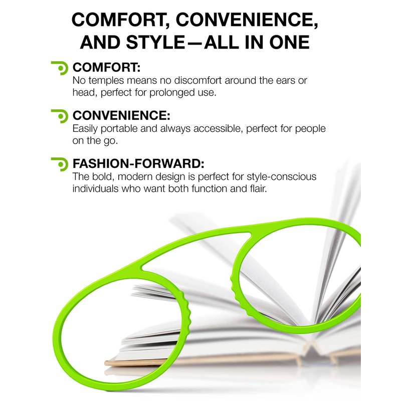 • Temple-Free Comfort: With a soft-touch nose clip, these portable reading glasses stay in place without adding pressure on the temples. Our nose clip reading glasses deliver pressure-free comfort from morning emails to late-night reads.