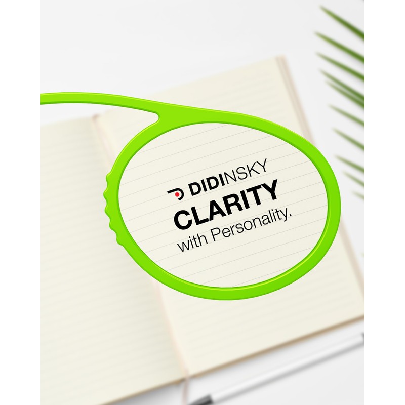 DIDINSKY Prado Round Armless Reading Glasses – Compact Travel Reading Glasses with Case – Anti-Glare, Anti-Scratch – Lime