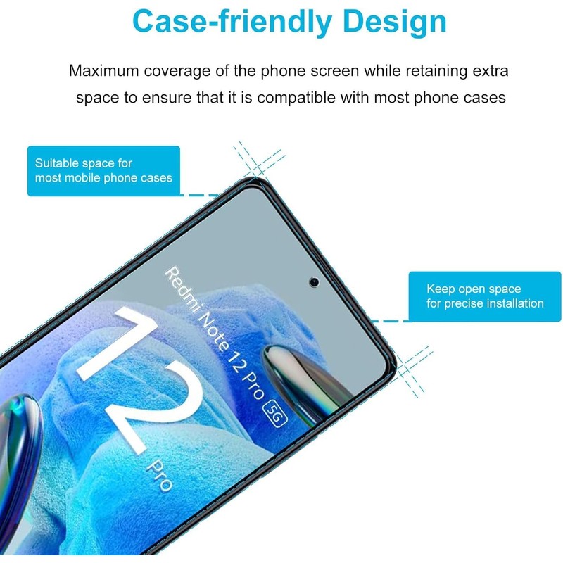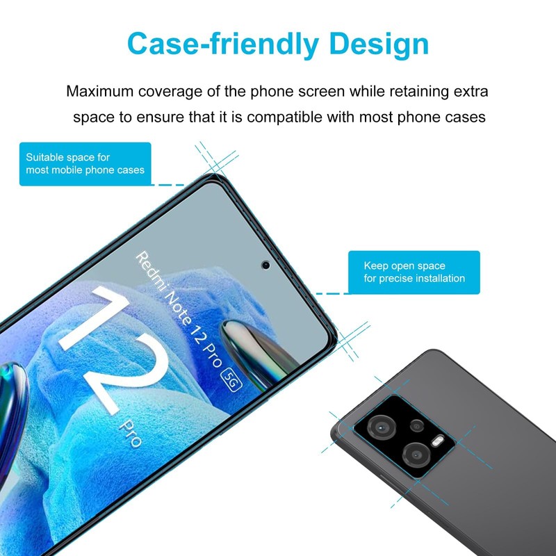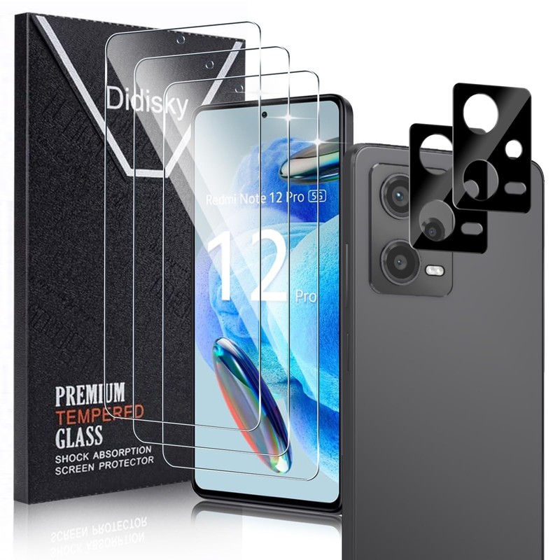 Didisky 3+2 Pack Tempered Glass Screen Protector for Redmi Note 12 Pro 5G(Not for Note 12 Pro 4G), 3 Pack Tempered Glass and 2 Pack Camera Protector Screen Protector, 9H,Easy to Install