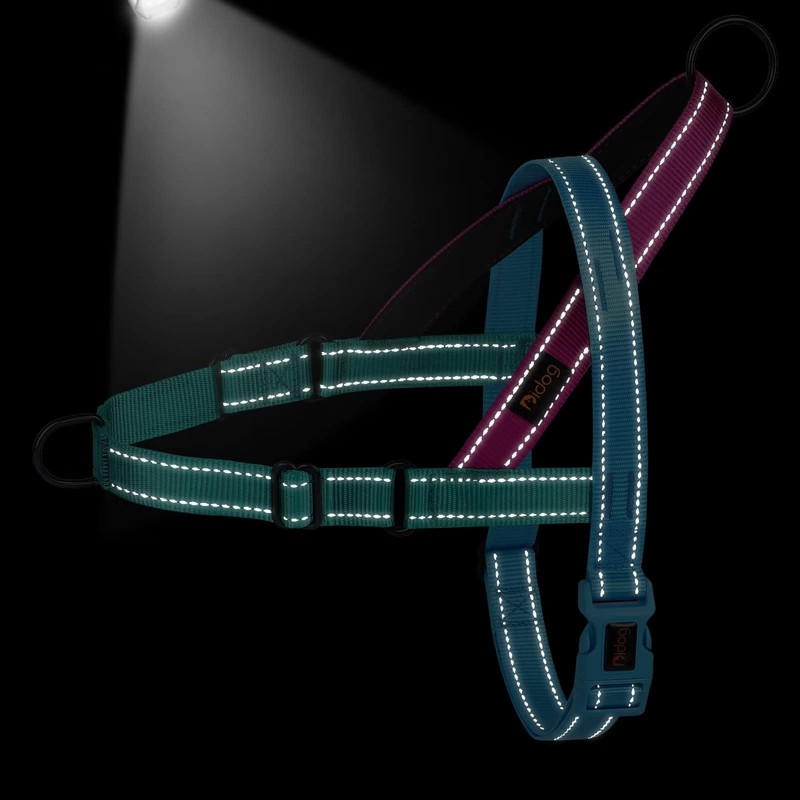 "I love the light weight and one buckle design of this harness. ... The soft padding ensures my dogo is comfortable on our walks and the front clip ensures he doesn't get loose."