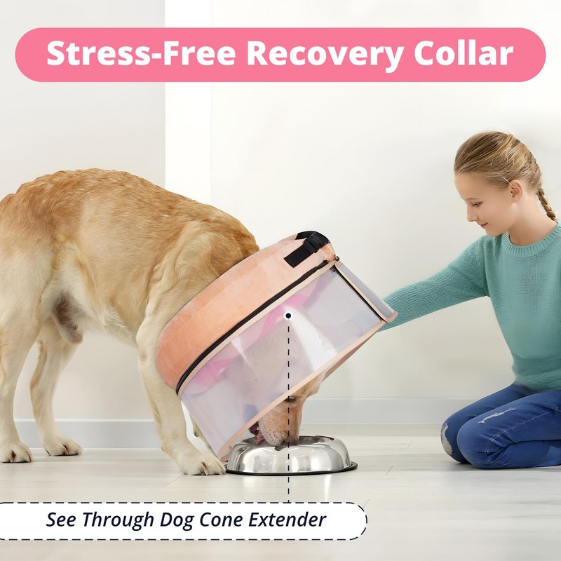 • Effective Protection: Combines inflatable collar base with removable transparent shield - a perfect dog cone alternative for large breeds. The elevated recovery collar shield increases lick-prevention coverage by 30%, effectively stopping dogs from licking or scratching surgical wounds, hot spots, or incisions. The removable zippered extension can be easily attached or detached as needed