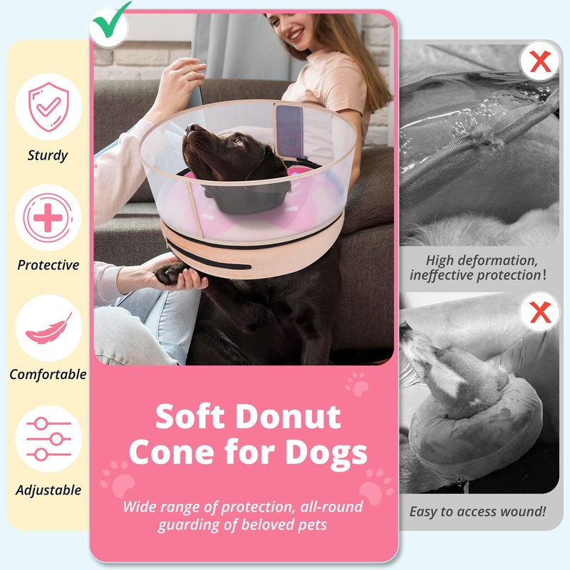 • 360° Visible Soft Cone: Our cone for dogs after surgery features a 360-degree visibility design, allowing your dog to see clearly in all directions. This soft dog cone offers a gentle cushion, protecting dogs from fear or discomfort when colliding with furniture and ensuring a pain - free experience when they accidentally bump into your legs. Just get rid of the traditional "cone of shame"