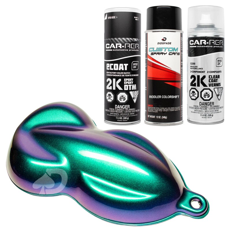 ColorShift complete aerosol kits are easy-to-use and create vibrant color changing effect effects, providing the ultimate color experience. Kits are designed with premium materials, featuring Didspade Custom Spray Cans and Car-Rep's renowned automotive spray paints. This ensures that the kits deliver a mind blowing chameleon effect that will leave a lasting impression.