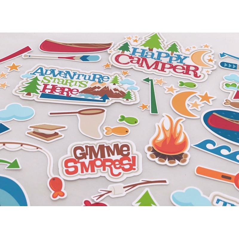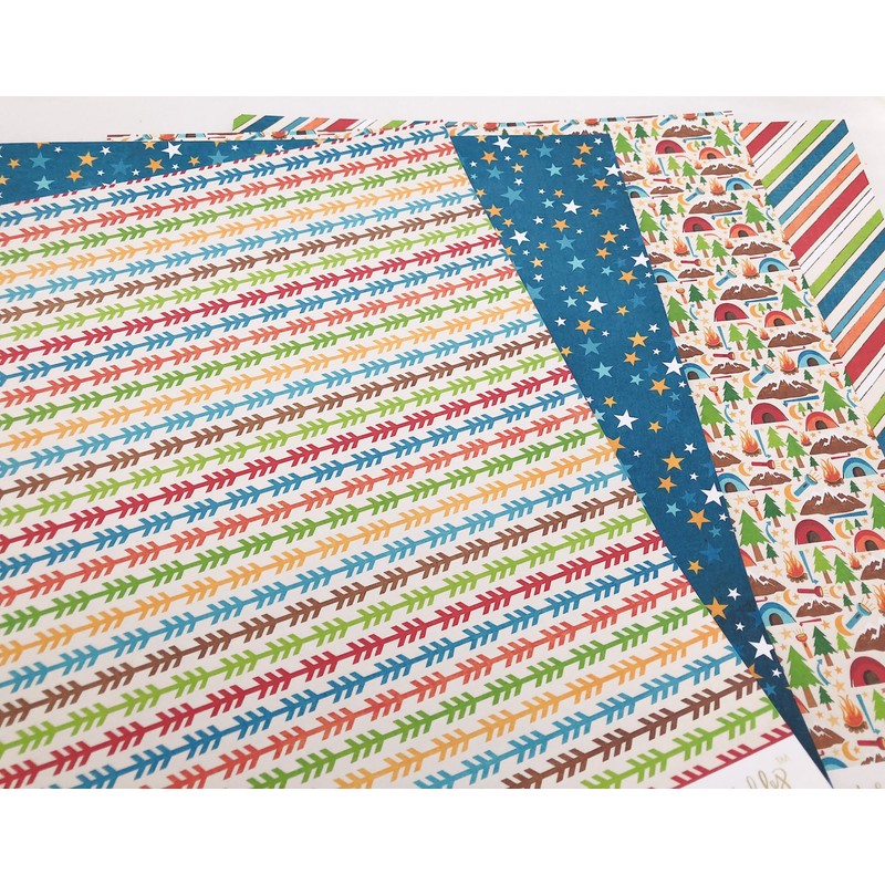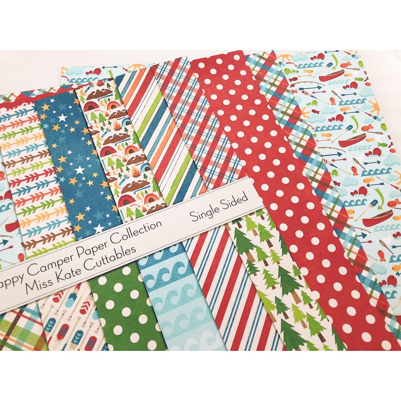 - ORIGINAL ADORABLE DESIGNS: The Happy Camper Paper Pack has a wide variety of Patterns including Polka Dots, Stripes, Plaid, Wrapping Paper, Bubbles, Pine Trees, Fishing, Lake, Tent, Fish, Waves, Sun, Red, White, Green, Yellow, and Blue.