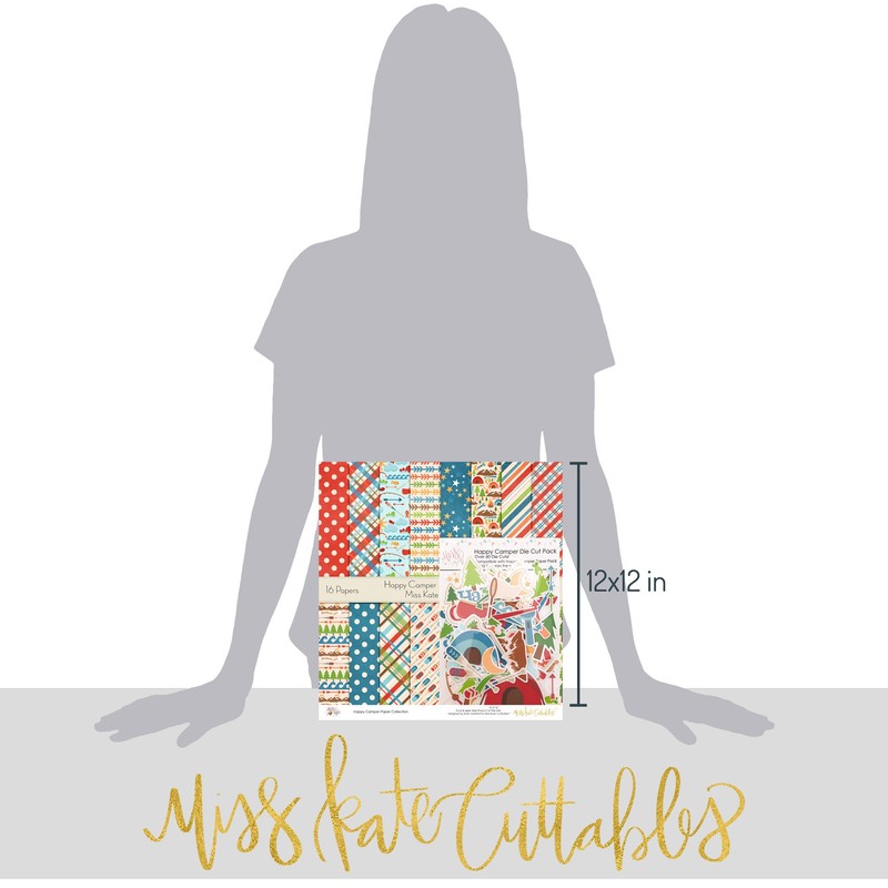 Die Cuts & Paper Set - Happy Camper - by Miss Kate Cuttables - 16 Single - Sided 12"x12" Premium Specialty Paper Sheets & Over 60 Coordinating Die Cuts