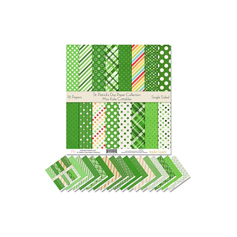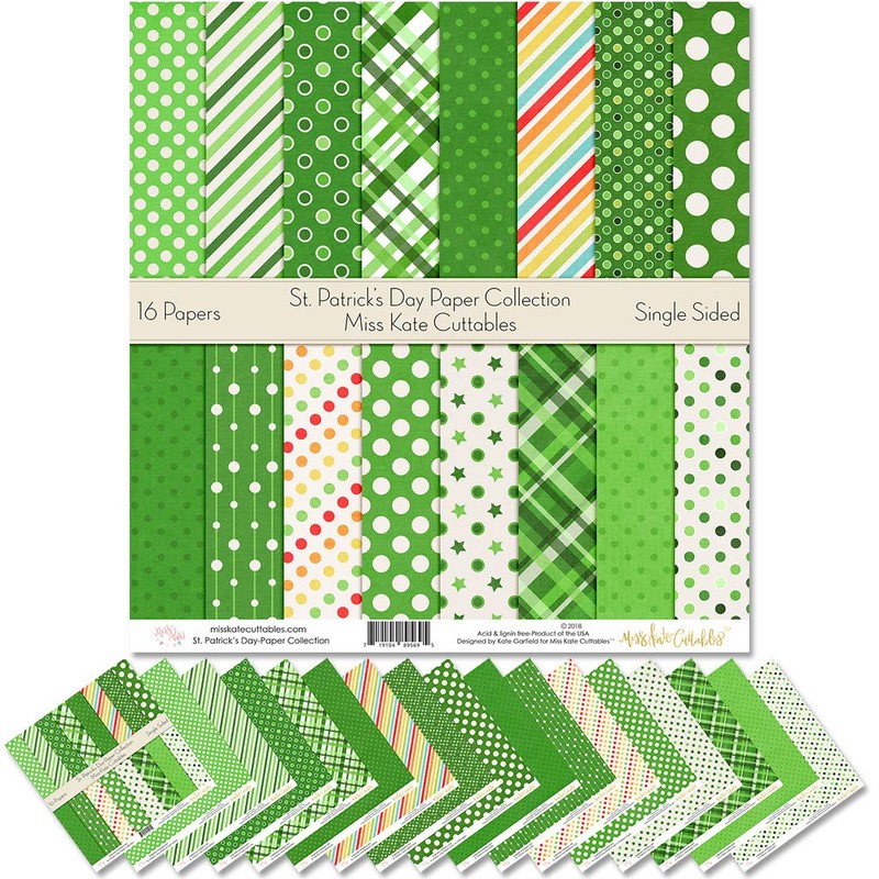 Die Cuts & Paper Set - St Patrick's Day - by Miss Kate Cuttables - 16 Single - Sided 12"x12" Premium Specialty Paper Sheets & Over 60 Coordinating Die Cuts