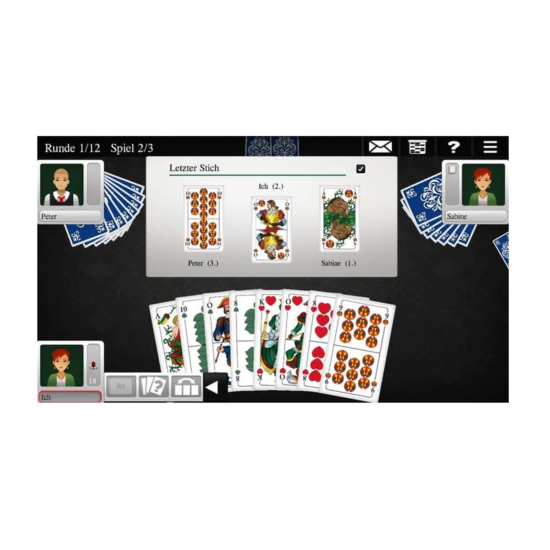 Switchable game options as well as different variants e.g. ramching, contra and re announcements or buck rounds, various card decks, extensive game evaluation, profiling, intelligent opponents, detailed German game instructions, clear menu navigation and much more.