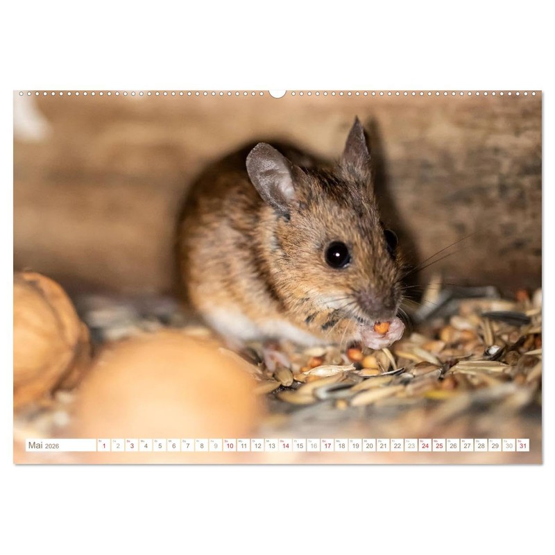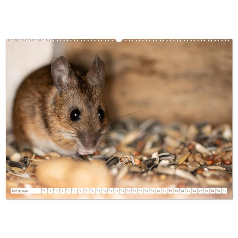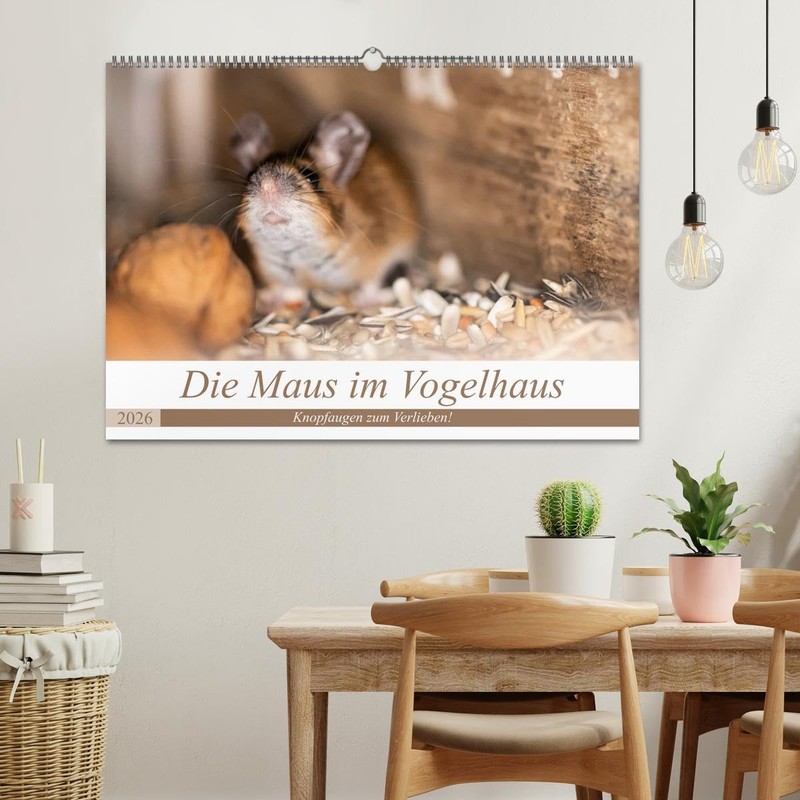 Die Maus im Vogelhaus (Wandkalender 2026 DIN A2 quer), CALVENDO Monatskalender: Süsse Knopfaugen und freches Grinsen! Mäuse sind einfach zum verlieben. (CALVENDO Tiere)