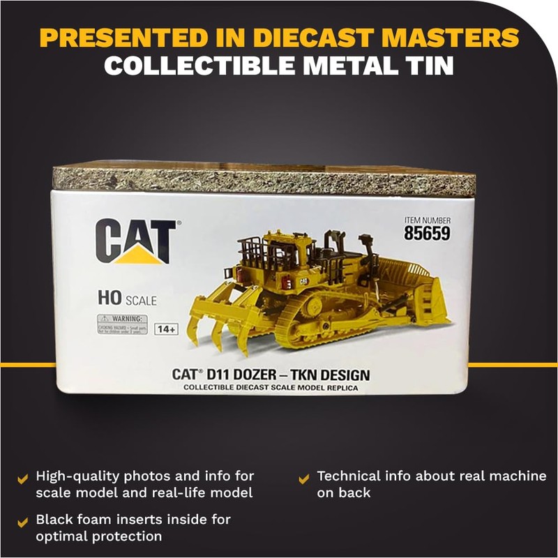 Diecast Masters Caterpillar D11 Bulldozer Tipo Pista TKN Design, Serie HO Scale Camiones Cat y Equipo de construcción | Modelo a Escala 1:87 Coleccionable Model 85659